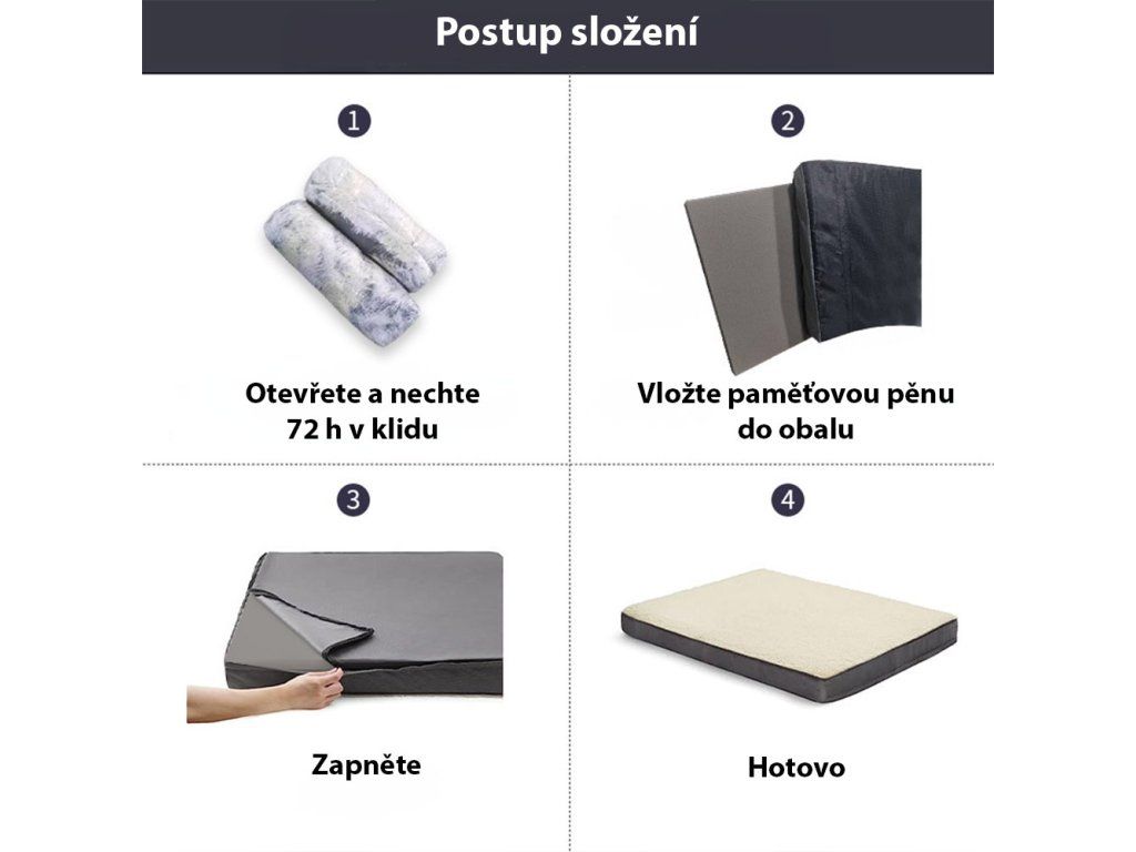 Matrace z paměťové pěny se dokonale přizpůsobí tvaru těla vašeho pejska, uleví jeho páteři, kloubům i svalům a dopřeje mu maximální pohodlí. Ortopedická konstrukce podpoří správné držení těla během spánku a pomůže rychlejší regeneraci pohybového aparátu. Pejsek se tak probudí odpočatý a bez bolesti.
